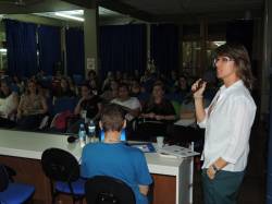A palestra de abertura contou com a professora doutora Luciani Salcedo de Oliveira, da Universidade Federal de Rio Grande – FURG, que falou sobre o tema: “Elas não precisam de um tablete, precisam de um livro e de uma caneta: identidade docente e práticas sociais contemporâneas”.