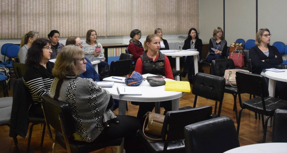 As assessoras da 36ª CRE, Angela Link de Jesus e Vania Simon, ressaltaram a importância das contribuições dos professores na construção do Referencial Curricular Gaúcho, o qual encontra-se aberto até o dia 25 de maio para receber as sugestões dos professores das redes estadual, municipal e privada das escolas do Rio Grande do Sul.