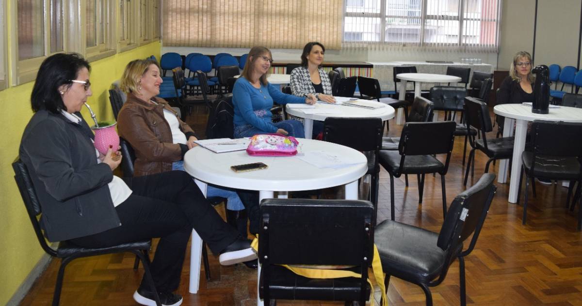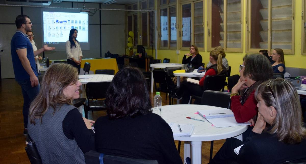 Na oportunidade, os professores debateram o Currículo Escolar a partir do Plano de Estudos de cada escola, considerando a BNCC e a necessidade de refletir sobre sua prática pedagógica, buscando o realinhamento curricular dos componentes de Língua Portuguesa e Língua Inglesa.
