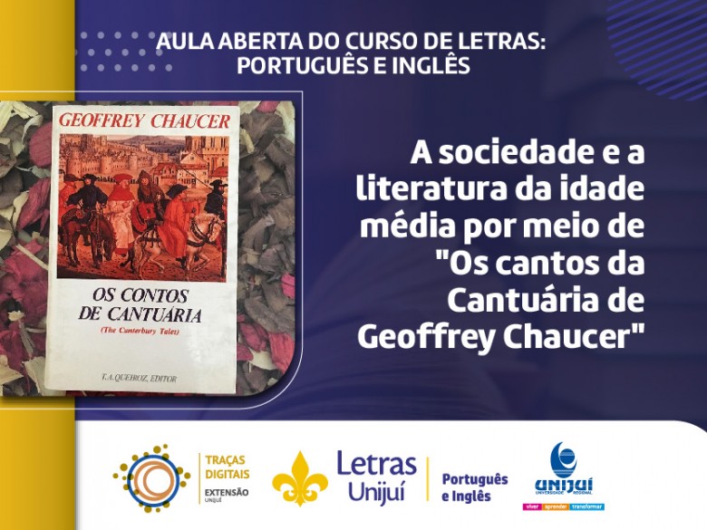 O Curso de Letras - Português e Inglês da Unijuí vai promover, no dia 23 de junho, a partir das 19h30, uma Aula Aberta com o tema: A sociedade e a literatura da idade média por meio de “Os cantos da Cantuária de Geoffrey Chaucer”.
