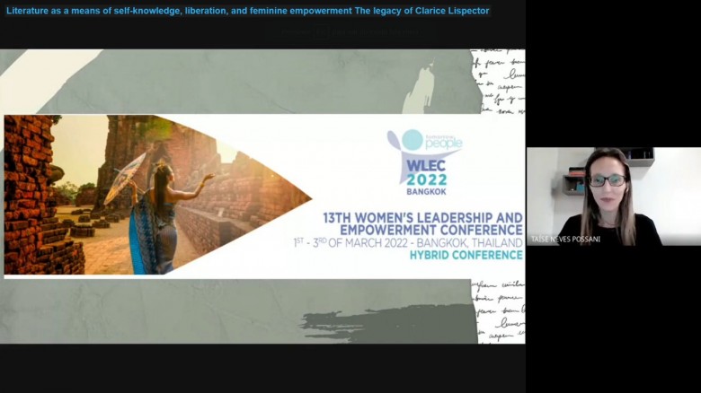 A 13ª Conferência de Liderança e Empoderamento das Mulheres - em inglês, 13th Women's Leadership and Empowerment Conference (WLEC2022), ocorreu entre os dias 1º e 3 de março, de forma online, e contou com a participação das professoras da Unijuí, Fernanda Trein e Taíse Neves Possani. No evento, as docentes apresentaram o trabalho “A literatura como meio de autoconhecimento, libertação e empoderamento feminino: o legado de Clarice Lispector”.