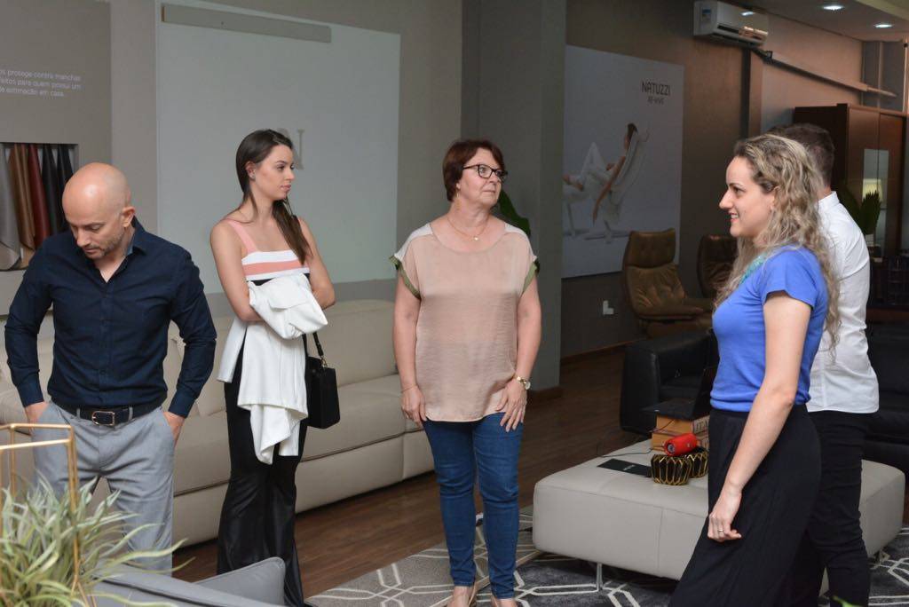 Também as professoras Tenile Piovesan e Claudia Legonde prestigiaram o Evento. Na oportunidade, todos os presentes puderam explorar os mobiliários da loja, sentir diferentes tipos de materiais, texturas e acabamentos, bem como, noções de composição e ambientações, que estavam disponíveis na loja.