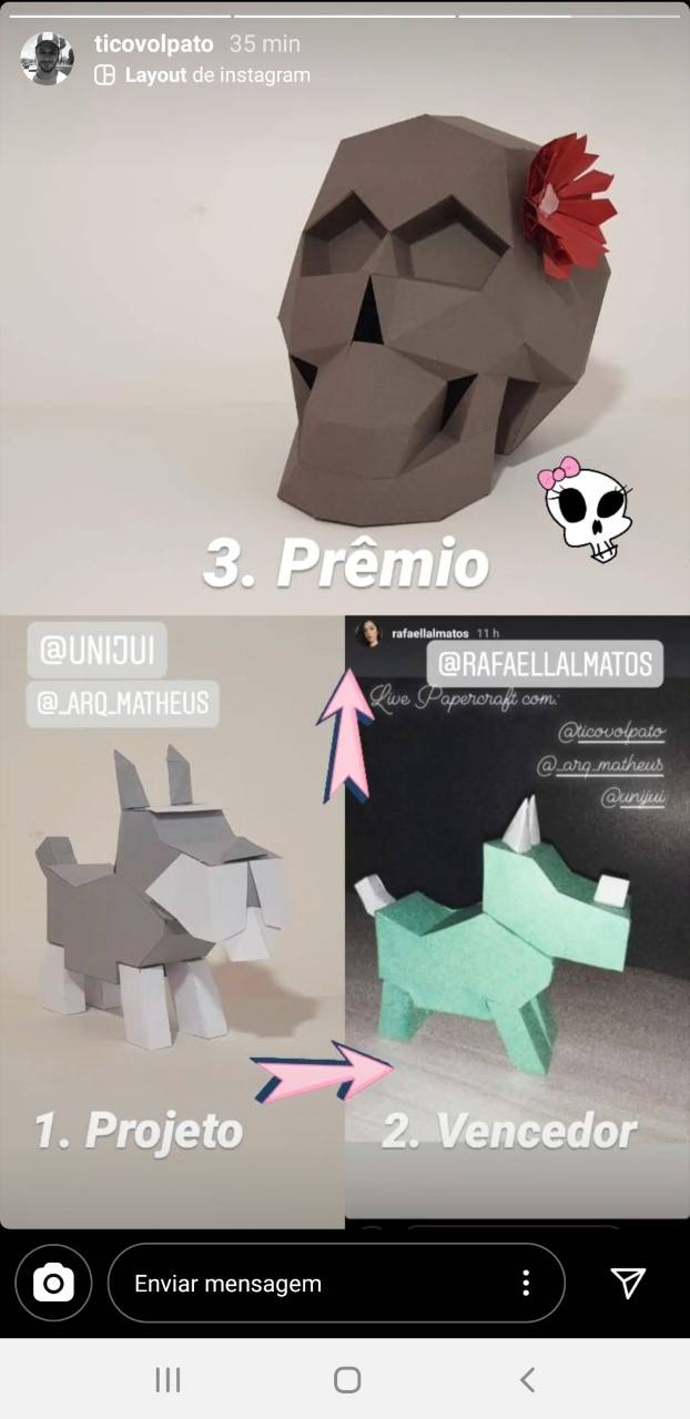 “Tive a oportunidade de assistir a live do Tico Volpato, ao qual quero expressar meu profundo agradecimento, pois abrilhantou de forma espetacular o meu conhecimento, pude observar em suas redes sociais o seu magnífico trabalho e, assim entender o porquê do seu sucesso e competência no parpercraft, é surpreendente que a partir de uma ideia pode-se criar diversas formas. Acredito que proporcionou e despertou a cada um, dentro de si, a motivação e a oportunidade de criar e desenvolver diversas obras de arte através do parpercraft. Obrigado por compartilhar conosco o seu trabalho, é perceptível o quanto sua postura motiva e incentiva a todos. Parabéns por esse profissional extraordinário e dedicado, pois lhe desejo muito mais sucesso na sua vida.” Disse Rafaella, vencedora do concurso e ganhadora de uma obra do artista Tico Volpato.