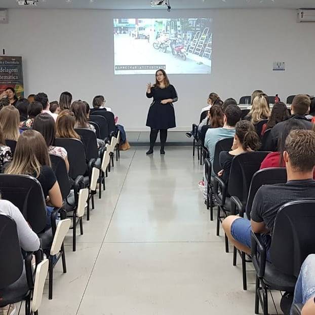 Aconteceu no dia 27/03, no auditório do DCEEng a 5ª edição da Aula Magna do curso de Arquitetura e Urbanismo da Unijuí. Na oportunidade recebemos a Prof. Dr. Vanessa Goulart Dorneles, docente da Universidade Federal de Santa Maria para compartilhar sua vivência sobre “acessibilidade e desenho universal”, tema explorado em seu doutorado.