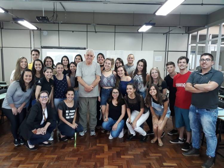 O conhecimento acerca da obra e do estilo de Falkembach foi coroado com a presença do próprio engenheiro e, atualmente psicólogo, que no dia 29 de novembro, agraciou a turma com uma aula na qual apresentou ideias centrais de sua formação e profissão. Nesta ocasião, o professor Jorge discorreu sobre a formação do sujeito enfatizando que “a vida tá na palavra” e ela “se organiza inconscientemente” nos primeiros anos de vida. No desenvolvimento do assunto, ele destacou a importância de um ambiente formativo (família, amigos, escola), algo como “uma sopa amorosa onde podemos descansar no outro” e, a partir dessas ideias, enfatizou a necessidade dos futuros profissionais em Arquitetura e Urbanismo investirem na formação científica, mas, também, na dimensão filosófica, cultural e artística.
