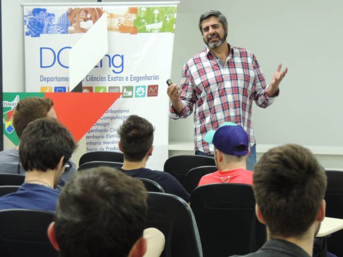 “A estrutura como condicionante e configuradora do desenho arquitetônico” foi o tema de palestra para os estudantes de Arquitetura e Urbanismo e Engenharia Civil da Unijuí, realizada na noite desta quinta-feira, no auditório do Dceeng.