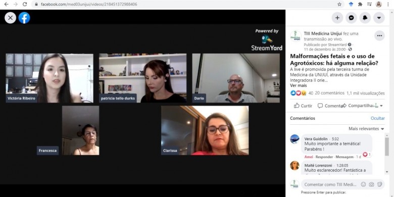 Sob tutoria do professor Ronchi, outro grupo promoveu uma live sobre ‘Malformações fetais e o uso de agrotóxicos: há alguma relação?’. A discussão, promovida na última sexta-feira, dia 11, contou com a médica Patrícia Dürks; com a médica radiologista Clarissa Chavez Ortiz; e com a bióloga Francesca Werner. De acordo com a aluna Victória Luisa da Rosa Ribeiro, a temática foi escolhida após o grupo observar, por meio de dados do Sistema de Informação do Datasus, que o número de malformações fetais na microrregião de Ijuí é elevado. Buscou-se, em bibliografia, possíveis causas para este problema, e entre eles estava o elevado uso de agrotóxicos na região. Para além da live, foram produzidos cartazes, que foram distribuídos na Secretaria Municipal de Saúde, Unidades Básicas de Saúde e nas Estratégias de Saúde da Família (ESFs).