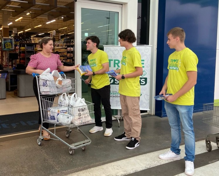 Acadêmicos do curso de Medicina da Unijuí participaram, no último fim de semana, do Trote Solidário. A ação, que ocorreu em parceria com o Núcleo Acadêmico do Sindicato Médico do Rio Grande do Sul e do Lions Clube de Ijuí, buscou arrecadar alimentos junto à comunidade. A ação solidária ocorreu nos supermercados Cotripal, Atacarejo Kuchak, Stok Center e Modelo, durante todo o dia do último sábado, 13 de abril.