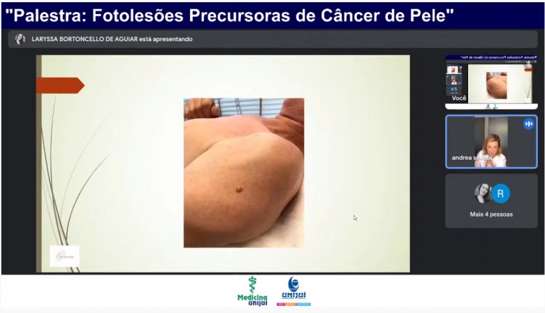 Com transmissão pelo canal da Unijuí no Youtube, aconteceu na noite desta segunda-feira, 6 de dezembro, uma palestra sobre “Fotolesões precursoras do câncer de pele”, organizada pelos estudantes da Turma 4 do curso de Medicina da Unijuí. O evento aconteceu por meio da disciplina Unidade Integradora, coordenada pelo professor Roger Zanandréa.