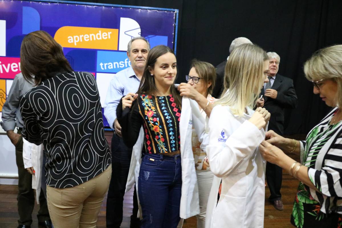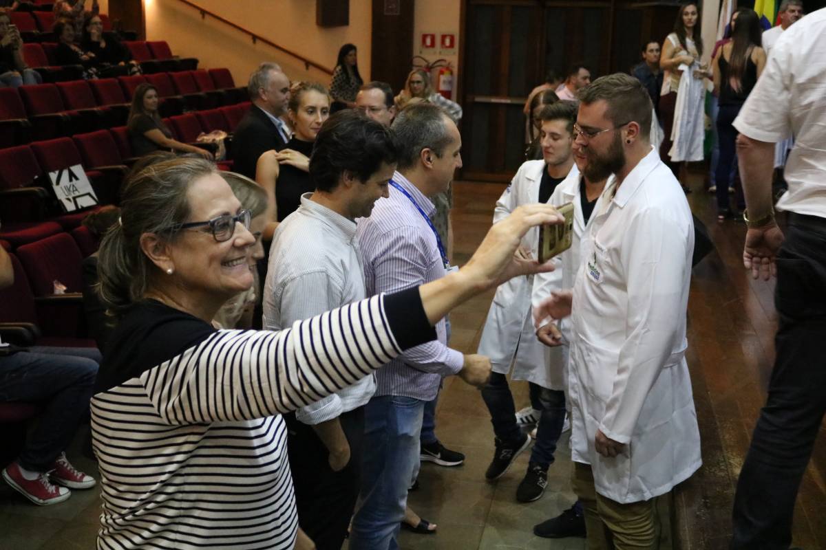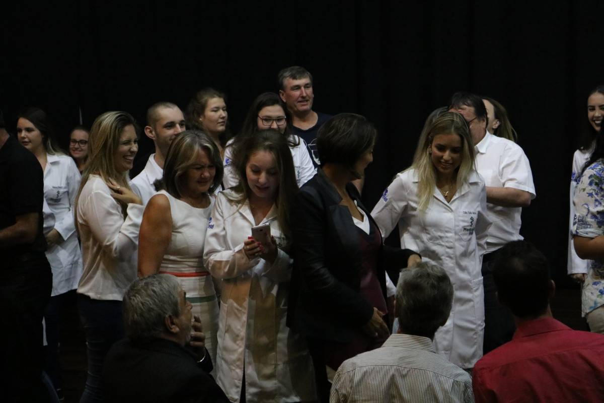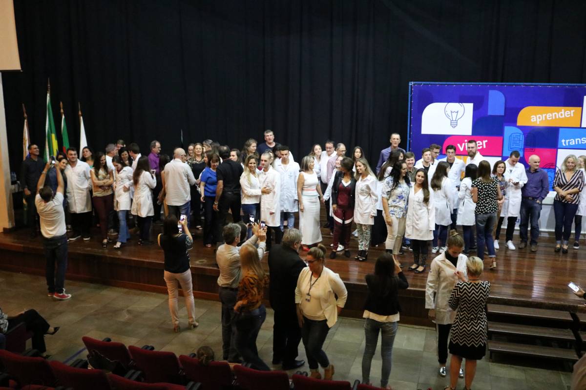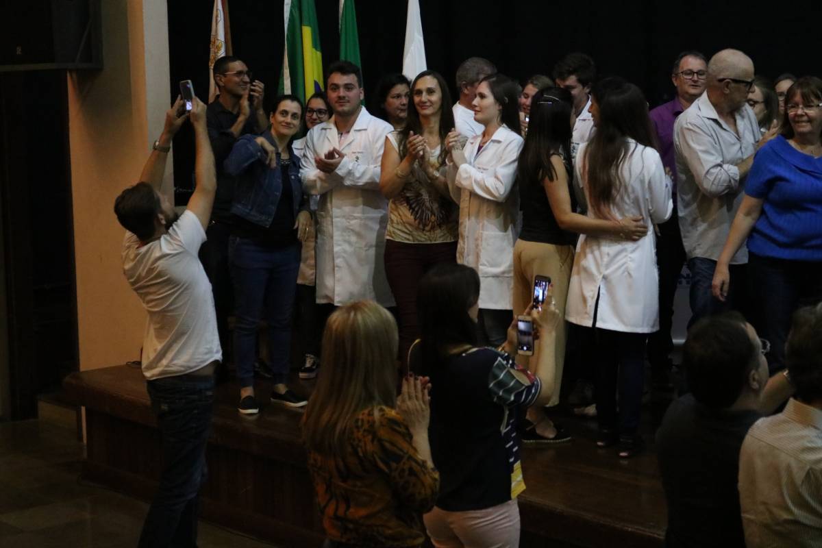 O evento, realizado no Salão de Atos Argemiro Jacob Brum, na noite desta segunda-feira, 11 de março, também teve como atividade o ato de entrega dos jalecos, envolvendo pais e professores.