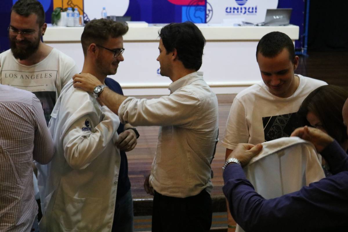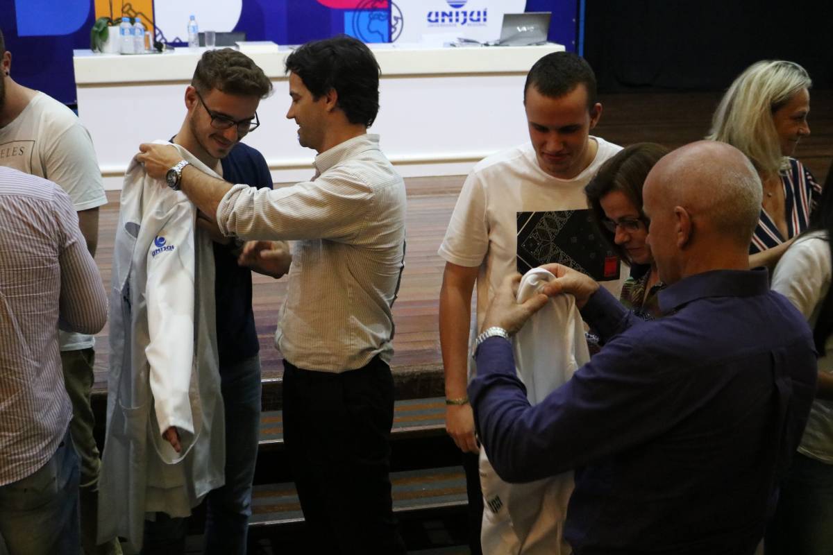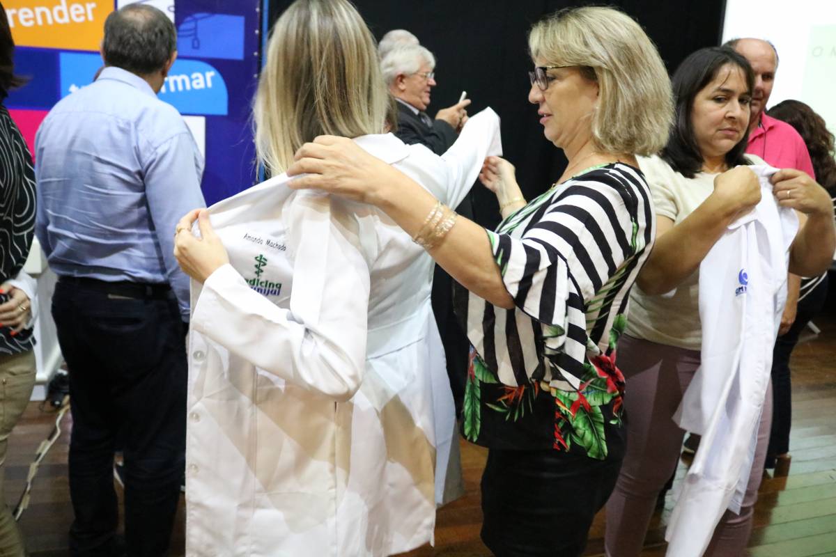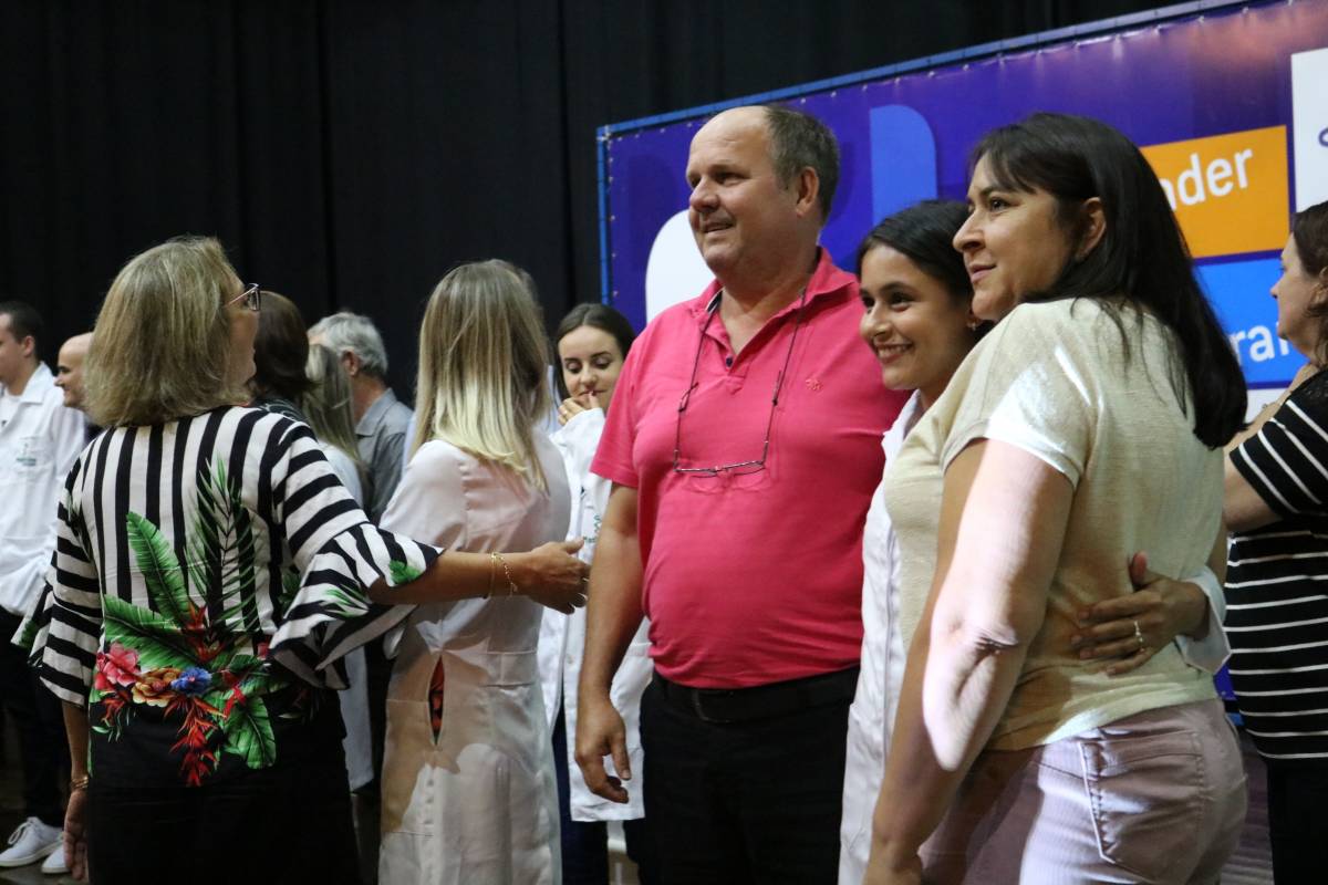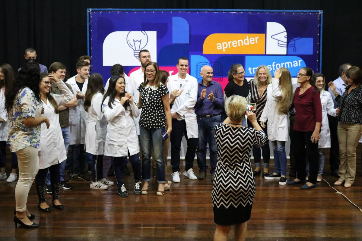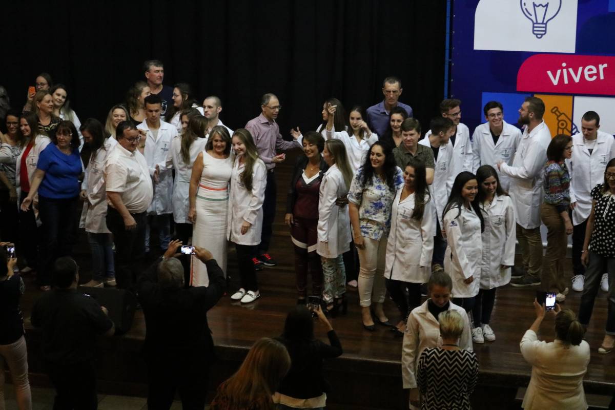 O evento, realizado no Salão de Atos Argemiro Jacob Brum, na noite desta segunda-feira, 11 de março, também teve como atividade o ato de entrega dos jalecos, envolvendo pais e professores.