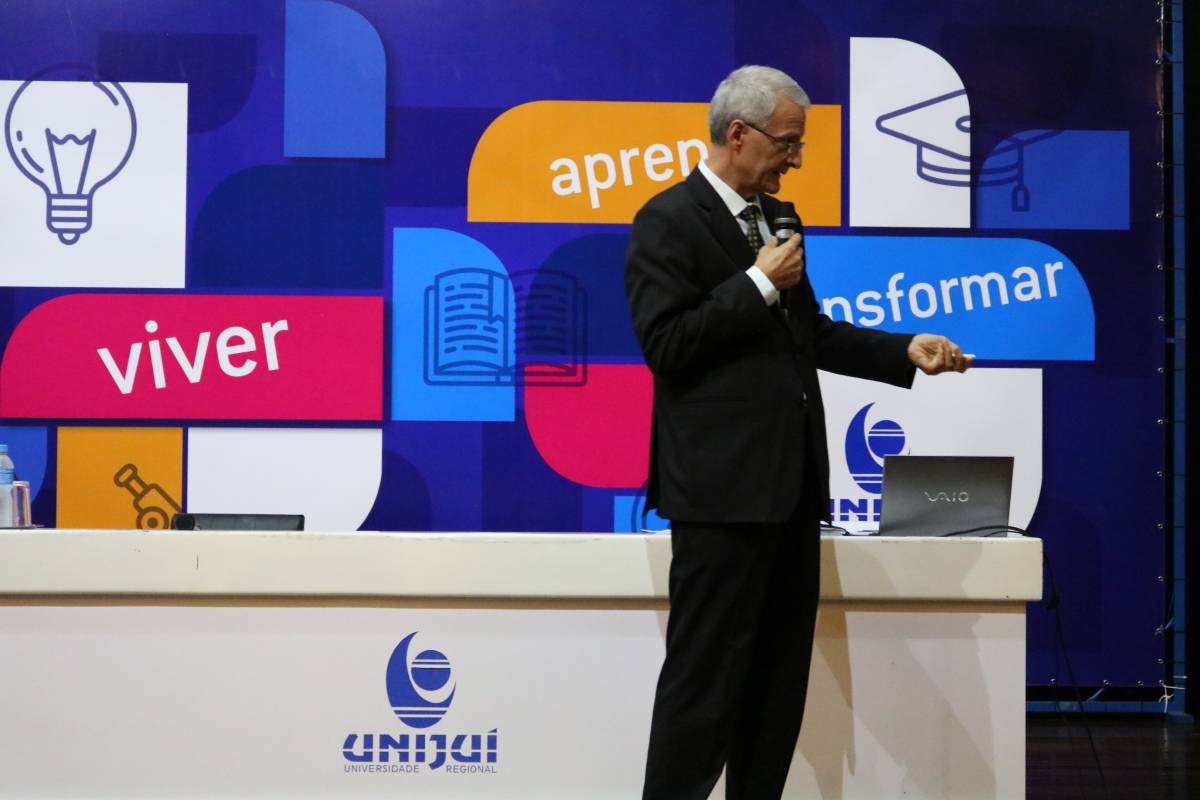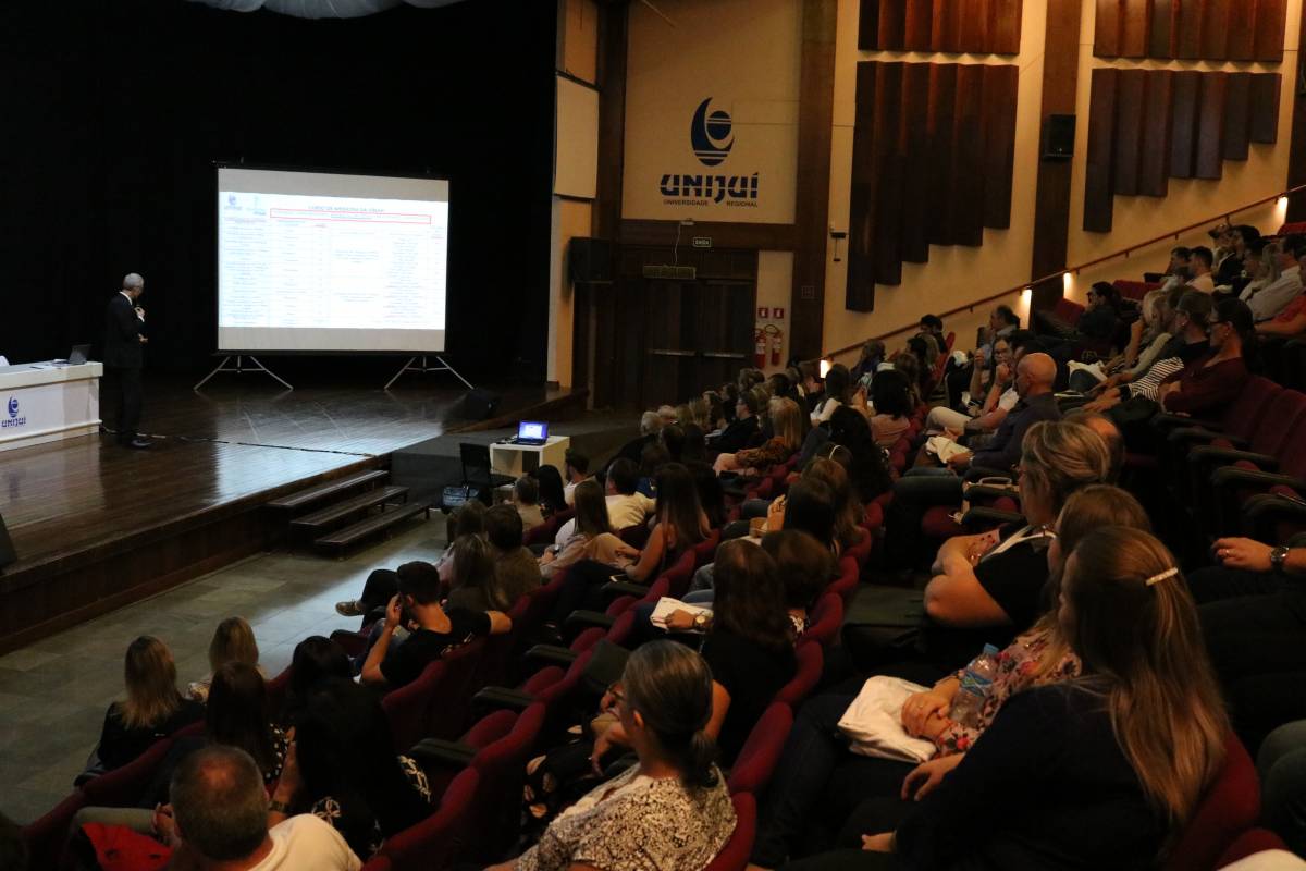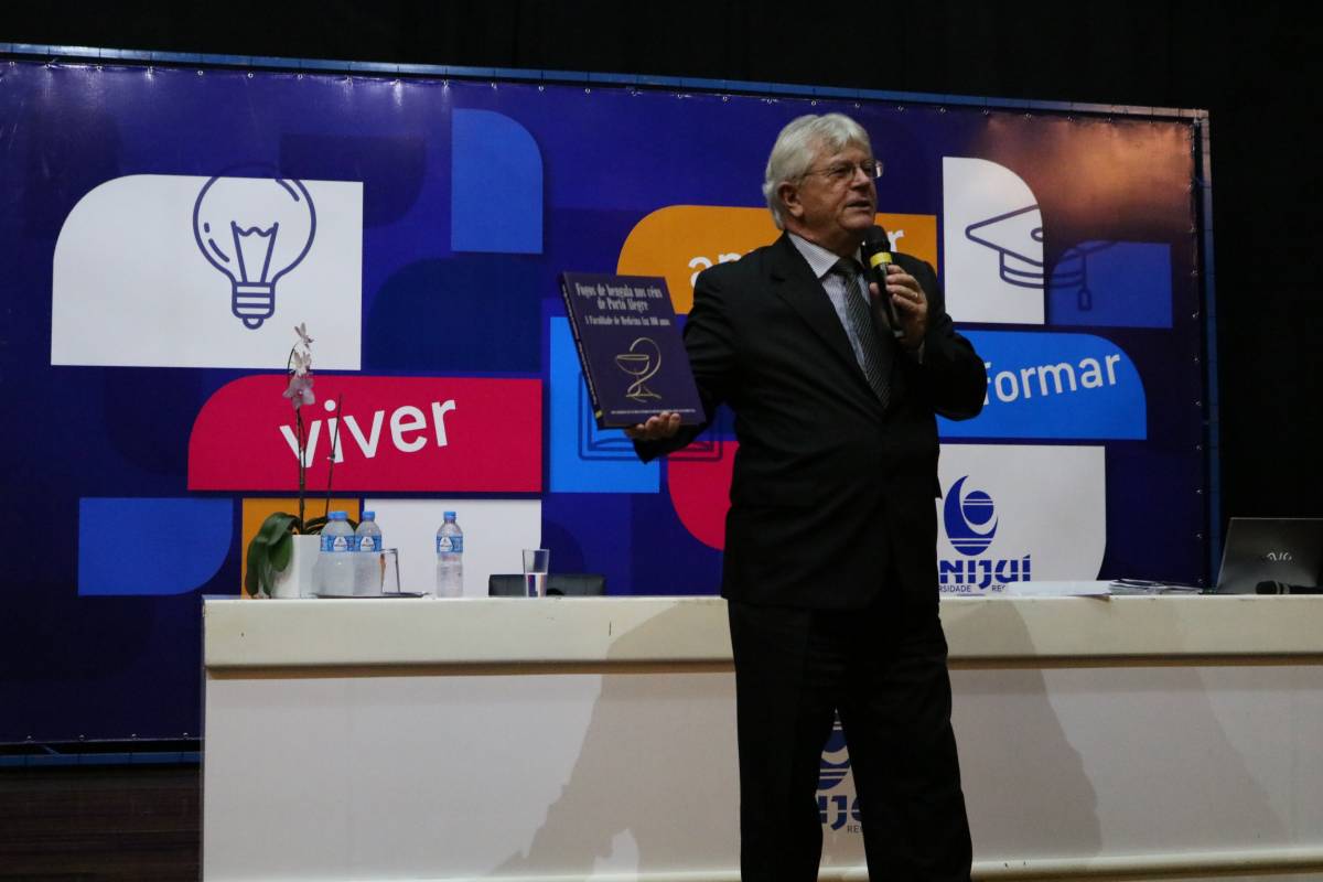 A palestra “Ser Médico: do sonho à realidade”, proferida pelo professor Dr. Mauro Czepielewski, abordou desafios e cenários sobre a formação em medicina na atualidade. O palestrante, natural de Ijuí, é professor da Faculdade de Medicina da UFRGS e possui doutorado em Endocrinologia pela Escola Paulista de Medicina (UNIFESP). “O que será da nossa sociedade em seis anos, quando esta primeira turma se formar? Projetar este cenário é um desafio enorme, pela complexidade da medicina e foi isto que me propus a discutir. Além disso, é uma oportunidade enorme participar deste momento como ijuiense. Acredito que o curso é um grande avanço para a saúde regional”, salientou.