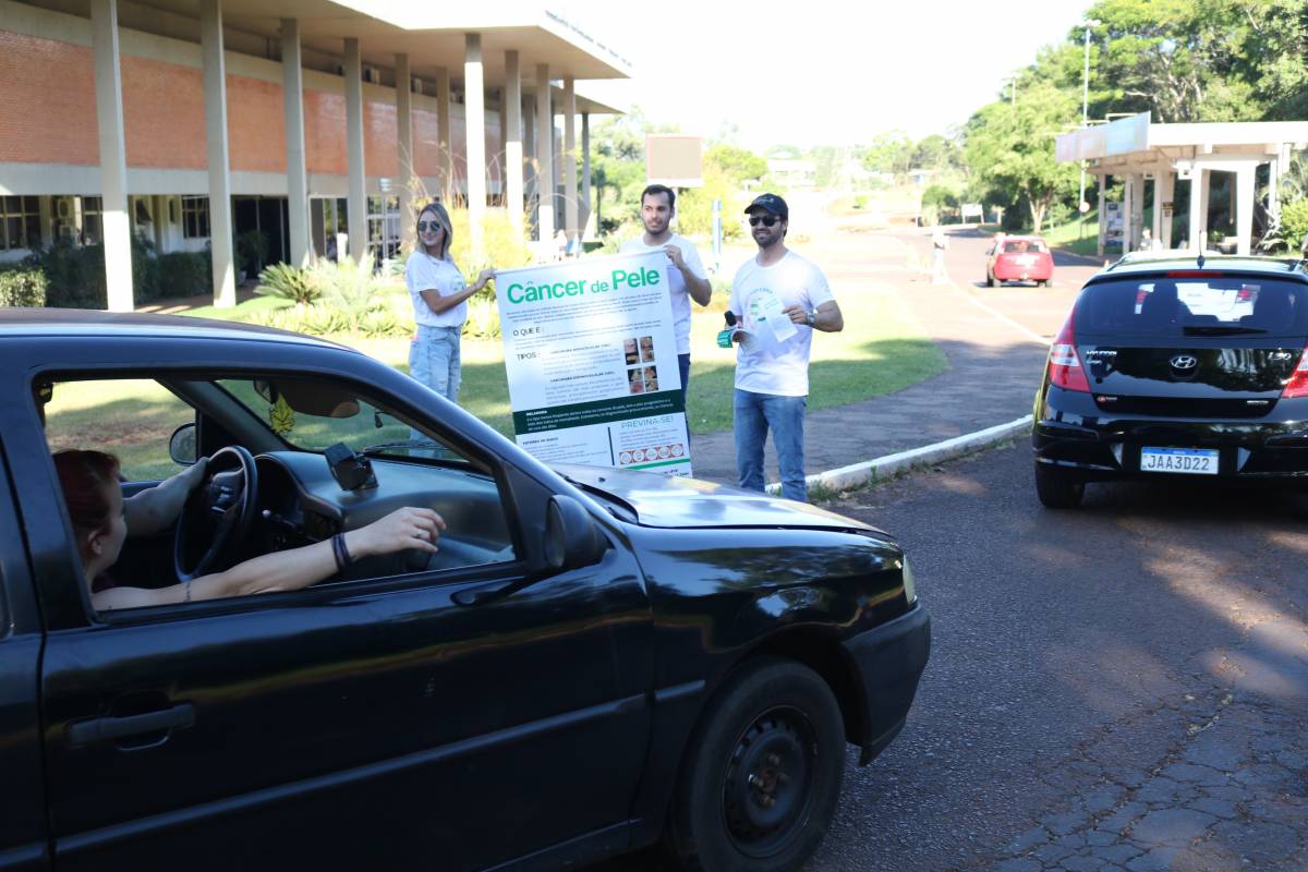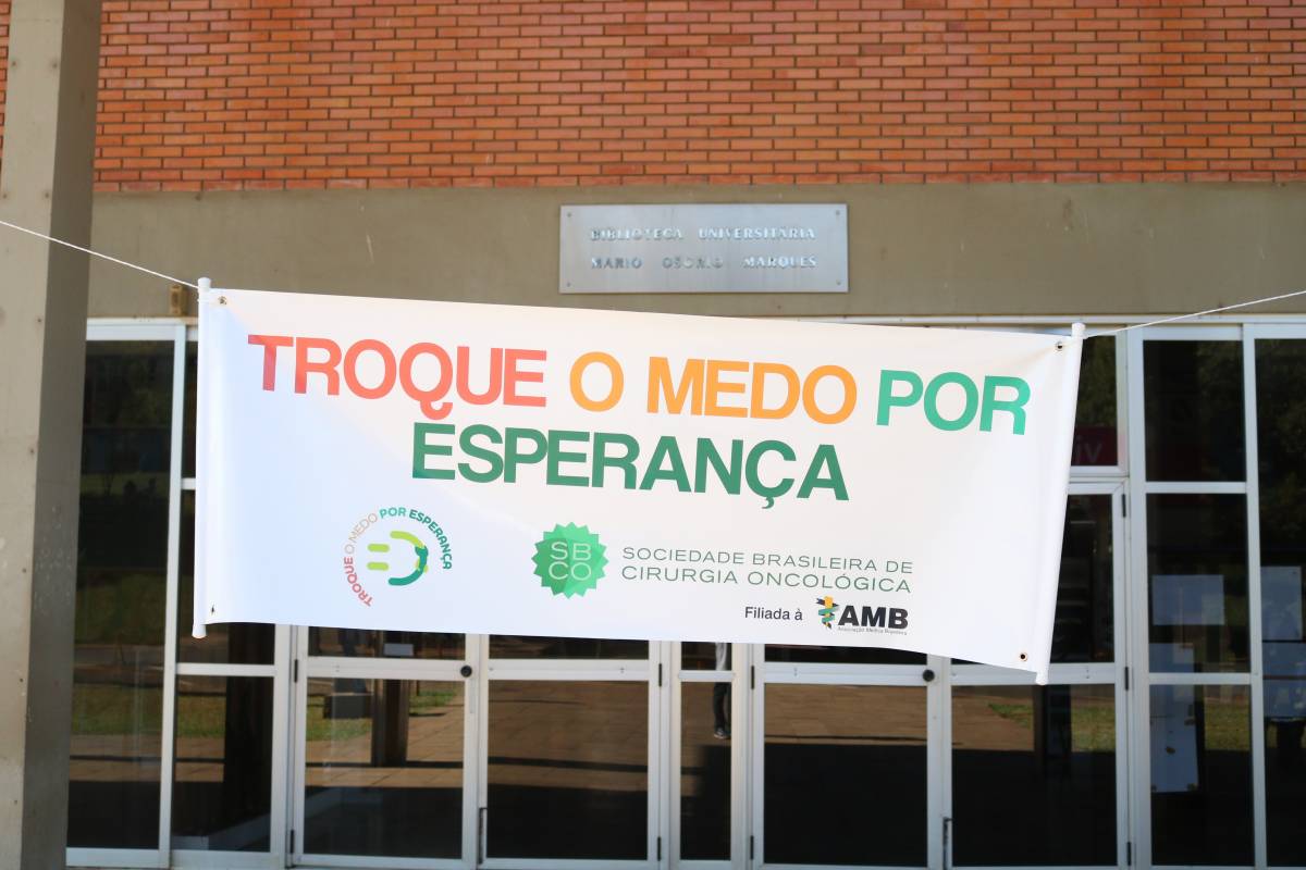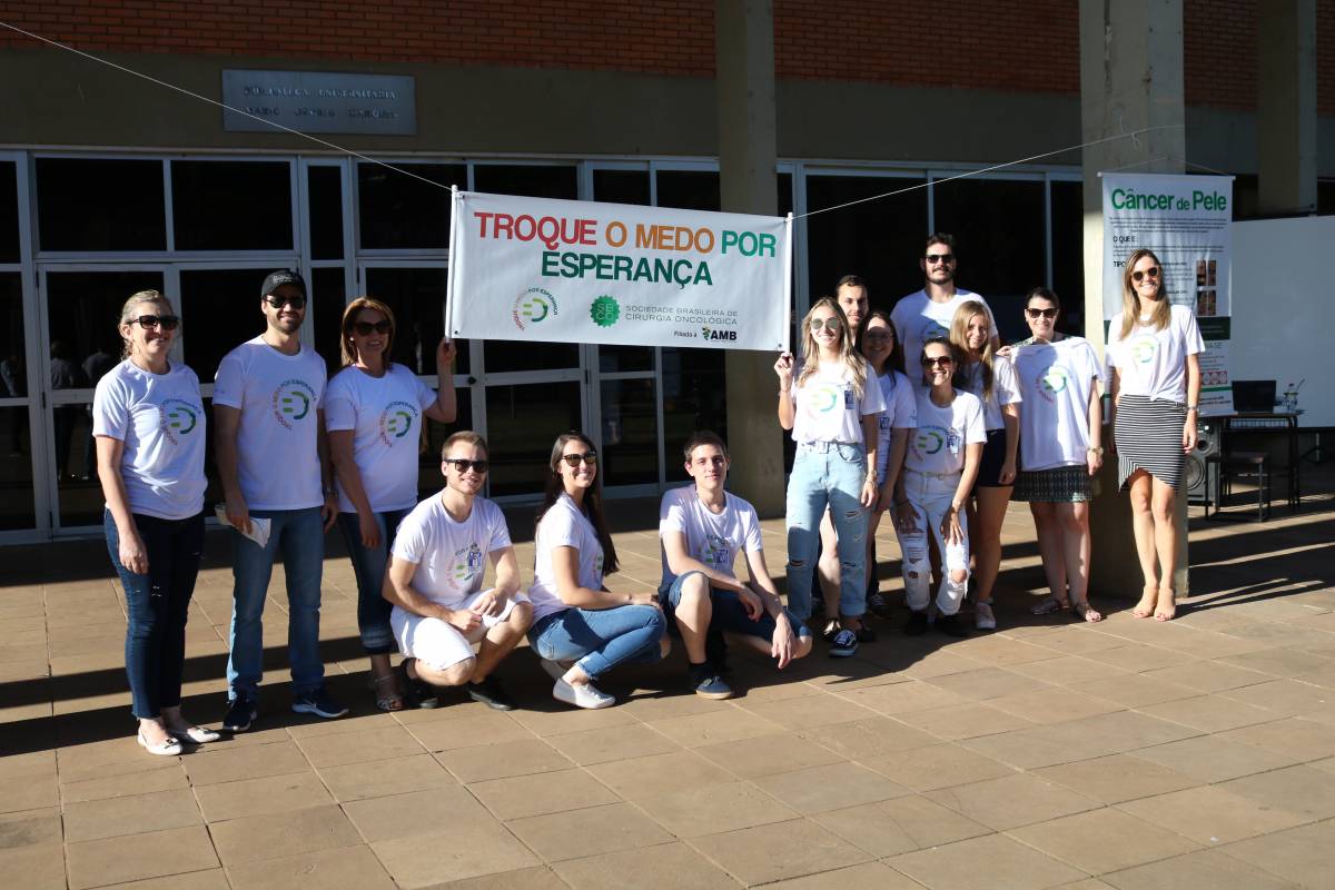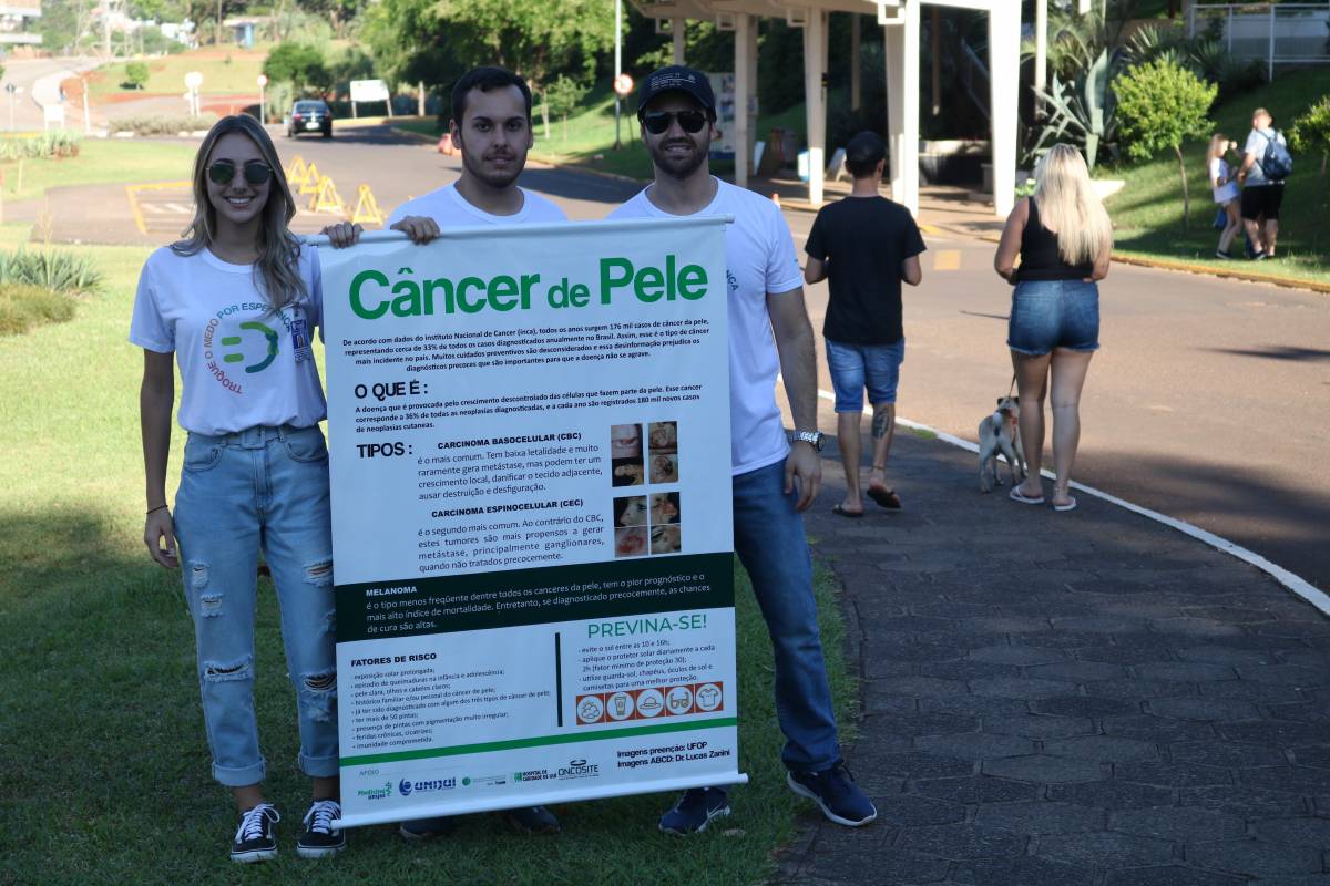 Com o propósito de reforçar a importância do Dia Nacional do Combate ao Câncer, em diversos locais do país foi desenvolvida a campanha “Troque o medo por esperança”. A Unijuí, por meio do curso de Medicina, com o apoio do Hospital de Caridade de Ijuí, Sociedade Brasileira Oncológica e Centro de Pesquisa Clínica em Oncologia, integrou as ações com atividades no campus Ijuí, na tarde deste domingo, 24 de novembro. Estudantes e professores do curso conversaram e distribuíram materiais informativos para a população que circulou pelo Campus, observando os cuidados necessários para prevenir o câncer de pele. As ações ocorreram simultaneamente em diversos estados brasileiros.