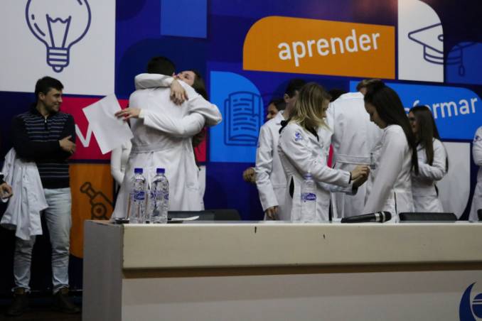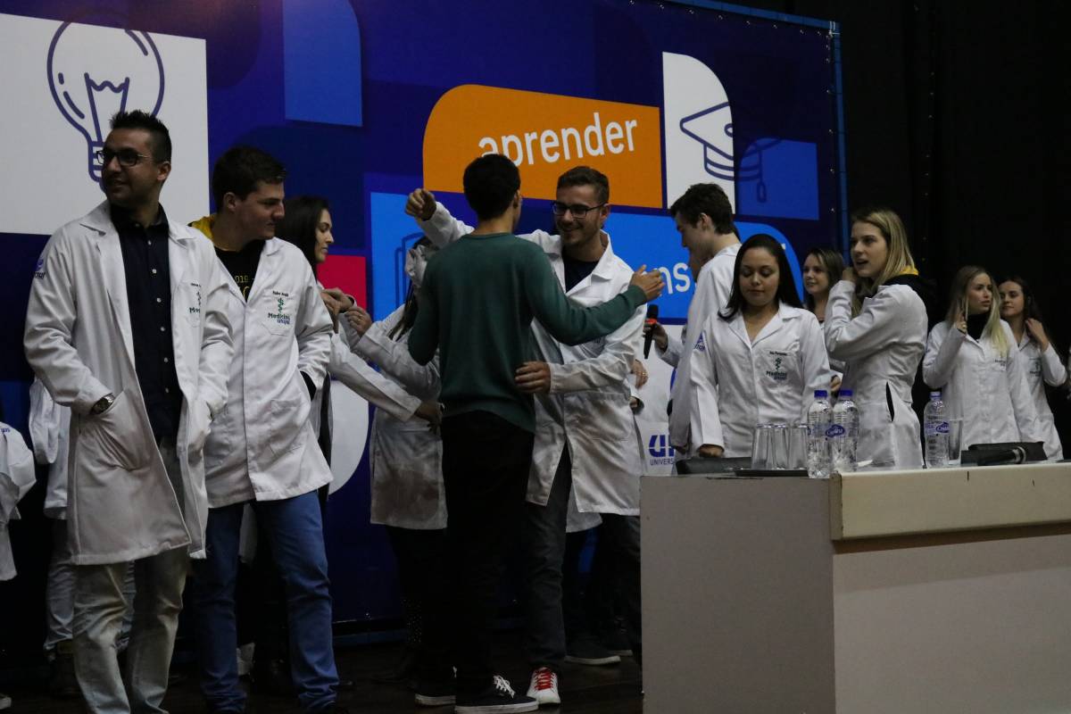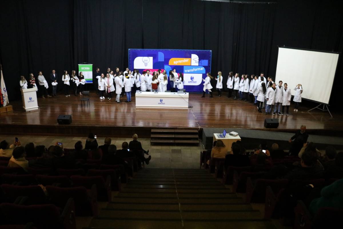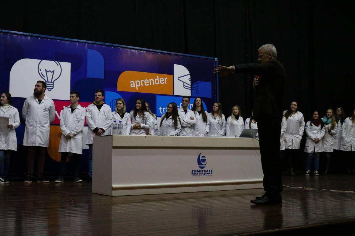 Na abertura do evento, a Vice-reitora de Graduação, professora Cristina Pozzobon realizou uma saudação institucional. Logo após, o coordenador do curso, professor Jorge Brust fez uma fala sobre a estrutura e proposta do curso de Medicina na Unijuí. E, para encerrar o evento, após a palestra principal, os calouros receberam os jalecos dos veteranos.