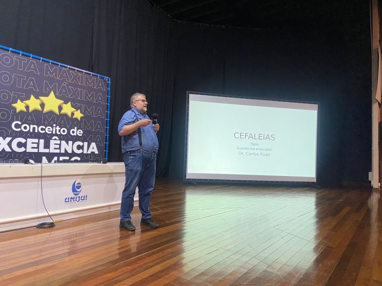 A palestra de abertura foi promovida pela Liga Acadêmica de Neurologia da Unijuí, com o tema “Cefaleias e Subtipos: quando me preocupar”, a qual foi ministrada pelo médico neurologista, Carlos Kuzli.
