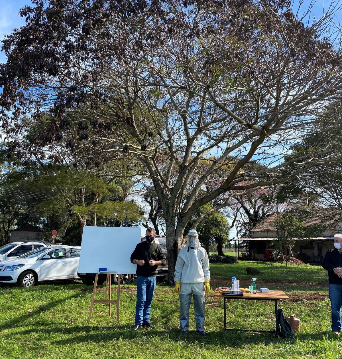 Na quinta-feira, dia 30 de julho, realizou-se aula prática da disciplina de Toxicologia e Receituário Agronômico, do Curso de Agronomia, ministrada pelo professor Dr. Roberto Carbonera no Instituto Regional de Desenvolvimento Rural – IRDeR. A aula teve como objetivos tratar da tecnologia de aplicação de agrotóxicos, regulagem de pulverização, uso de equipamentos de proteção individual e do manejo fitossanitário realizado no Instituto.