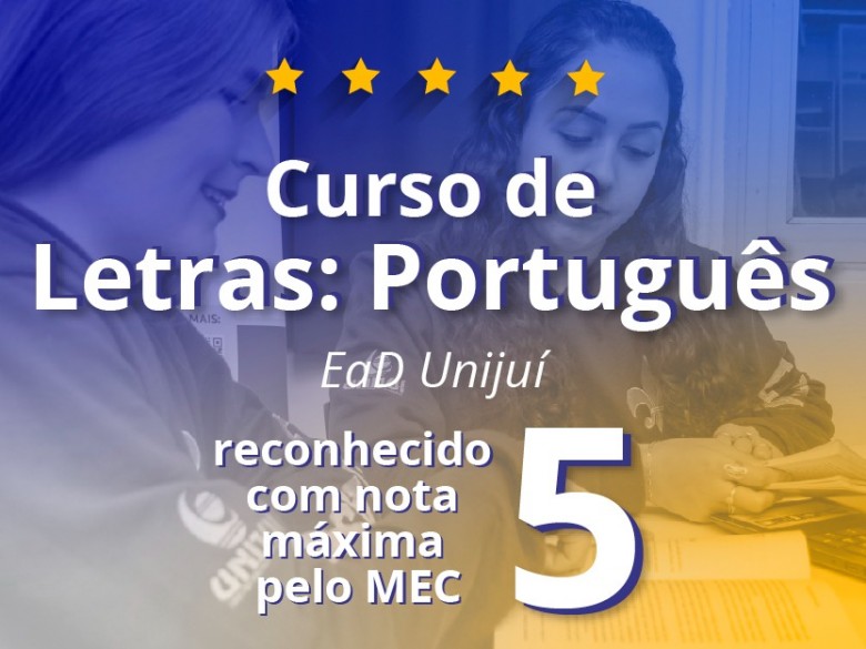 O curso de licenciatura em Letras: Português da Unijuí, na modalidade de Ensino a Distância (EaD), recebeu nesta segunda-feira, 4 de março, a nota máxima na avaliação realizada pelo Ministério da Educação (MEC), por meio do Instituto Nacional de Estudos e Pesquisas Educacionais Anísio Teixeira (INEP), para o ato de reconhecimento do curso.