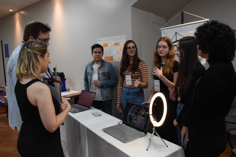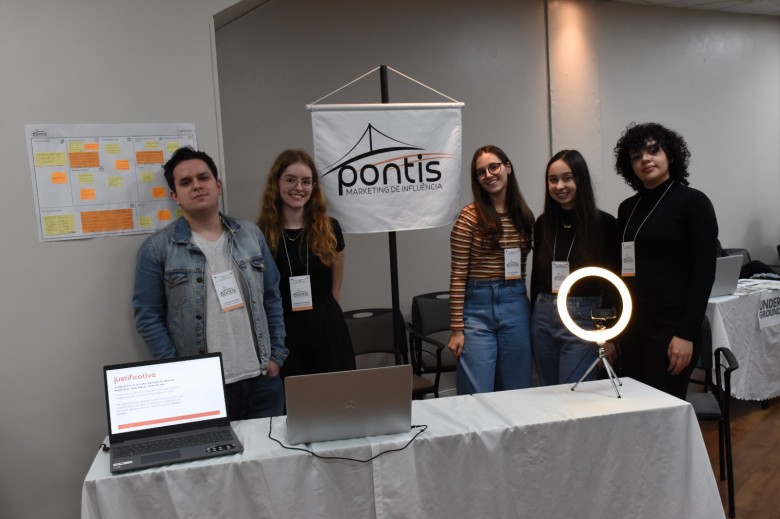 O grupo da estudante de Jornalismo, Carolina Gomes, idealizou uma agência de marketing de influência, com o propósito de facilitar contatos e ligar criadores de conteúdo às marcas. Durante a feira, o grupo apresentou a proposta utilizando o Canvas, representando a identidade visual e compondo o cenário com uma ring light, para elucidar do que se tratava o projeto. “Também produzimos um protótipo de Instagram e site, canais que a empresa trabalharia, para possibilitar a melhor idealização do projeto”.