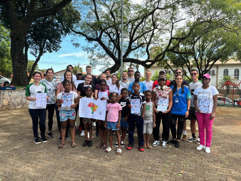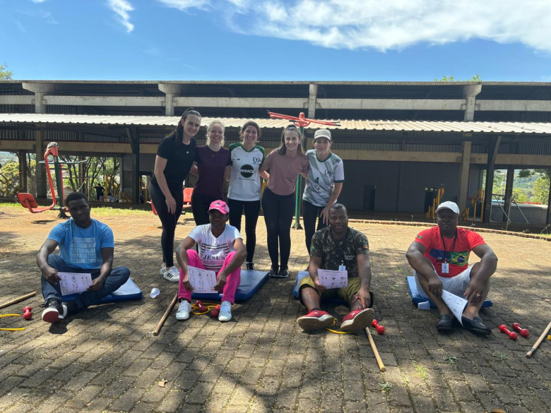 No último sábado, o curso de Educação Física da Unijuí campus Santa Rosa realizou uma ação de integração com a Associação de Haitianos, marcando o encerramento do Projeto Integrador Linguagens e Multidisciplinaridade, orientado pela professora Fabiana Ritter Antunes. A atividade foi resultado do trabalho desenvolvido pelos estudantes ao longo do semestre, que atuaram em três grandes frentes: práticas de exercícios, estudo e aplicação de brincadeiras típicas brasileiras e ensino sobre esportes.
