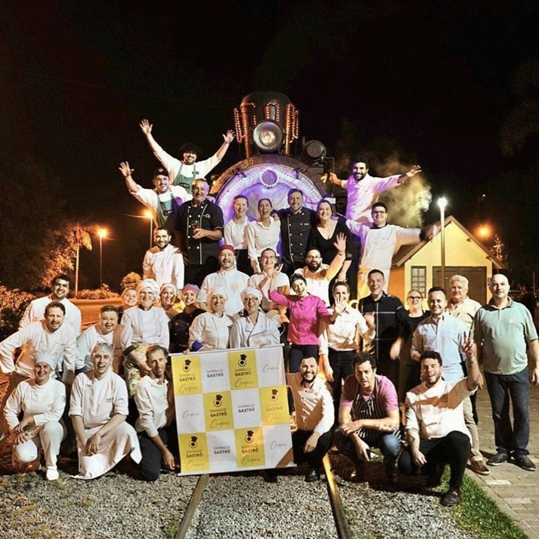 Na última sexta-feira, 23/10, o Curso de Gastronomia da Unijuí esteve presente no evento Garibaldi Gastrô, que ocorre anualmente em Garibaldi, na serra gaúcha. O aluno do curso Cléber Sperotto, e a chef contratada pelo curso Tiana Hintz participaram do evento que esse ano completou a quarta edição. Foi um encontro de saberes e sabores que durou quatro dias e mesclou programação online e presencial, em conformidade com o protocolo estadual para realização de eventos. Foi de 20 a 23 de outubro com bate-papos, oficinas, almoço solidário e jantar autoral e harmonizado com vinhos da região a bordo da Maria Fumaça, finalizando com um passeio noturno entre Garibaldi e Carlos Barbosa.