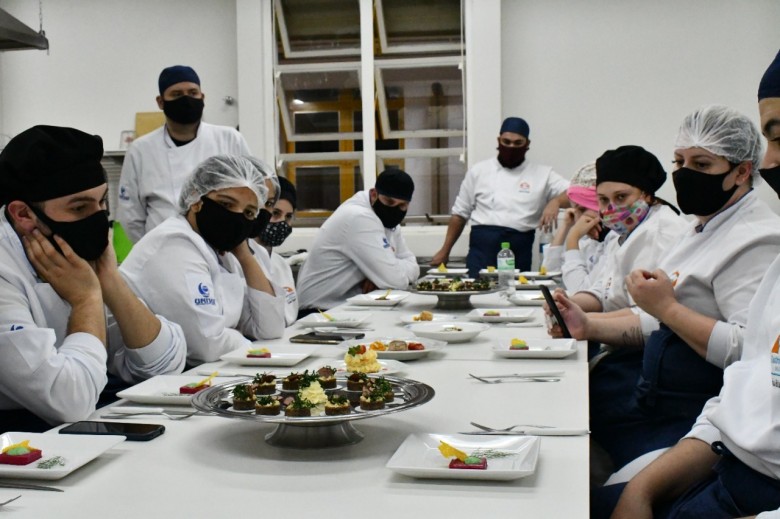 Cada grupo desenvolveu um prato de autoria própria e o serviu em porções menores. Após a degustação, foi analisada se a sequência fez ou não sentido. Além da atividade desenvolver as preferências dos estudantes, tinha como objetivo evidenciar a importância do planejamento e do diálogo para se obter a sintonia entre os pratos.