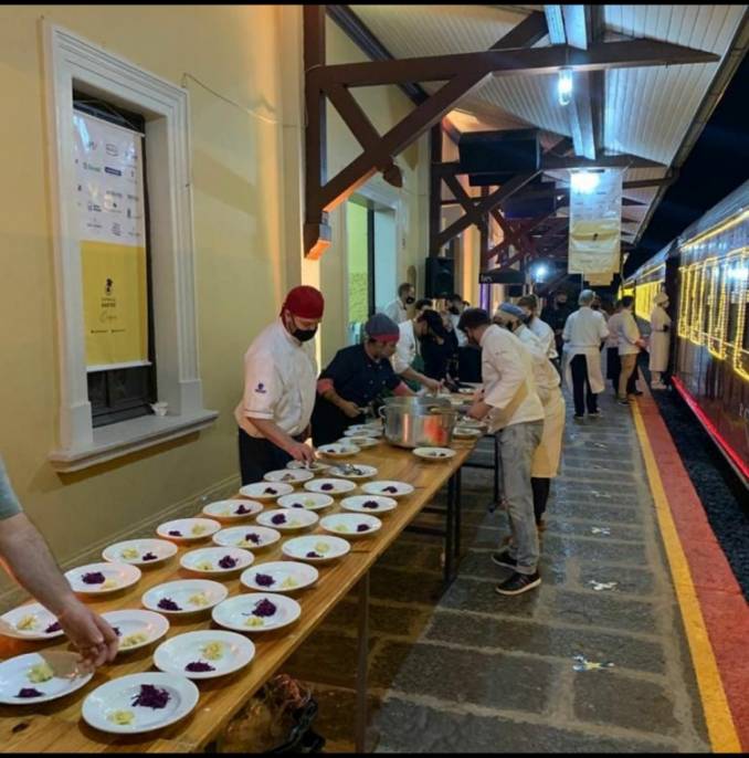 Segundo a chef contratada do curso de Gastronomia da Unijuí, Tiana Hintz, foi uma experiência prática e única no setor de eventos, em que todos os alunos do Curso foram convidados pelo chef e professor Israel Bertamoni na aula diferenciada sobre apresentação visual dos pratos e criatividade que ele ministrou para a turma em setembro. "Os alunos, aos lados dos chefs de cozinha, montaram os pratos e todos fizeram o serviço levando a sequência dentro dos vagões diretamente aos clientes. O serviço de bebidas foi feito a parte pela equipe de bebidas", relata.