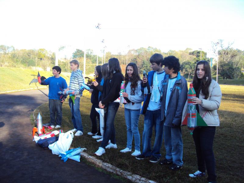 A atividade faz parte do projeto “Cosmos: sustentabilidade e vida”. A etapa inicial aconteceu ainda no mês de abril quando os alunos, coordenados pelas professoras Janete Maria Strieder, de Física e Maria Bernardete Dessuy, de Matemática, iniciaram as pesquisas de origem e construção dos foguetes. Divididos em nove grupos, os alunos do 1º ano do Ensino médio, foram ao laboratório de Física da UNIJUI, com o projeto elaborado e com os materiais necessários para a construção dos foguetes. A construção dos foguetes considerou as variáveis de tamanho, peso, aerodinâmica, visual, estrutura e funcionamento.