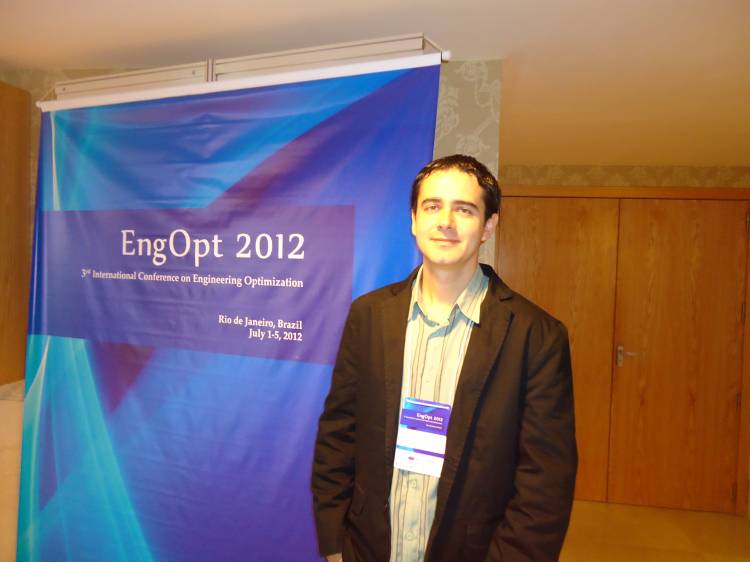 O mestrando em Modelagem Matemática, Jonas Fernando Schreiber, apresentou trabalho no EngOpt 2012 (3rd International Conference on Engineering Optimization), sediado no Rio de Janeiro.