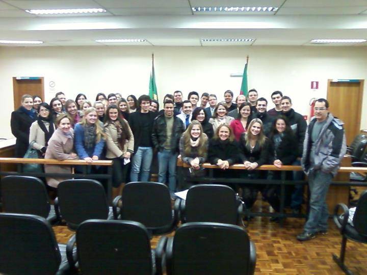 Além dos acadêmicos, participaram da audiência a professora Maristela Gheller Heidemann, o Juiz Titular do Juizado, Eduardo Giovelli; o Juiz Leigo, Erton Goetz e os servidores do Fórum Silviane Boufleur e Diogenes Souza.
