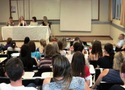 O painel abordou o tema 'Pedagogia e Prática Profissional: o pedagogo em ação', com as professoras Angela Hoffmeister, coordenadora da Escola de Educação Infantil do SESC –Santa Rosa; Rosangela Kurylo, professora do Colégio Dom Bosco e do Curso Normal do Visconde de Cairu, de Santa Rosa; Rejane Schulz, Diretora da Escola de Educação Infantil Curumim, de Santa Rosa; e Elidiane Cristina Saueressig, professora do Curso Normal do Colégio Cristo Rei, de Horizontina. O painel teve a coordenação da professora da UNIJUÍ Claudia Maria Seger Cunegatti.