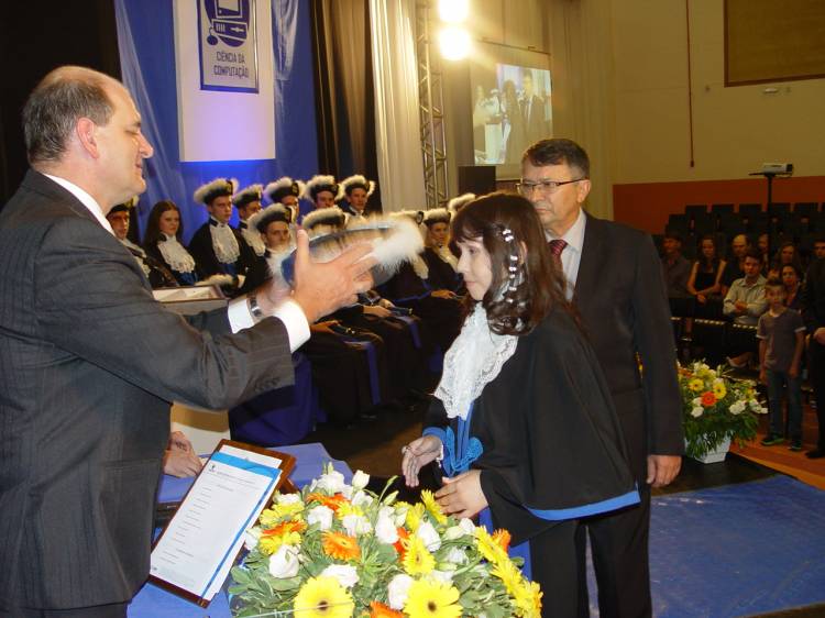 A UNIJUÍ formou neste feriadão de Carnaval a aluna Lisandra de Freitas Cichocki. Um tumor nos nervos ópticos diagnosticado aos 11 anos, e a perda total da visão aos 16, não foram empecilhos para que, com 32 anos, ela pudesse realizar seu grande sonho: concluir o ensino superior. Lisandra colou grau em Computação - Licenciatura.