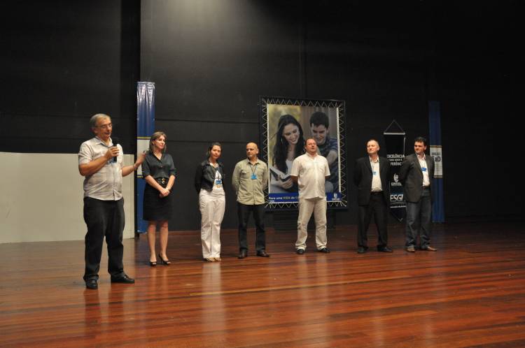 Depois disso foi a vez da coordenadora da Escola Superior de Gestão e Negócios (ESGN), Lucinéia Felipin Woitchunas, falar sobre os cursos de curta duração e especialização oferecidos pela Escola, explicando a dinâmica de funcionamento da ESGN neste início de semestre.