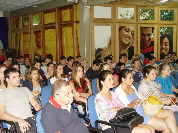 Foram apresentadas a estrutura e organização do departamento, bem como o projeto pedagógico do curso de Direito, destacando aspectos relativos a organização curricular e a vida acadêmica, possibilidades de estágios, pesquisa e extensão.