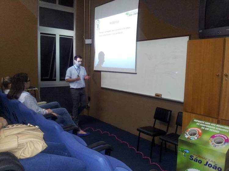 Discutir sobre o descarte de medicamentos em desuso, vencidos ou sobras foi o principal objetivo da aula inaugural do curso de Farmácia da UNIJUÍ, realizada no dia 11 de abril, que contou com a presença do farmacêutico Luiz Henrique Lodi, Supervisor do setor de Suporte Técnico Farmacêutico da Rede de Farmácias São João.