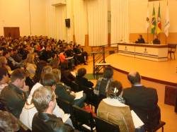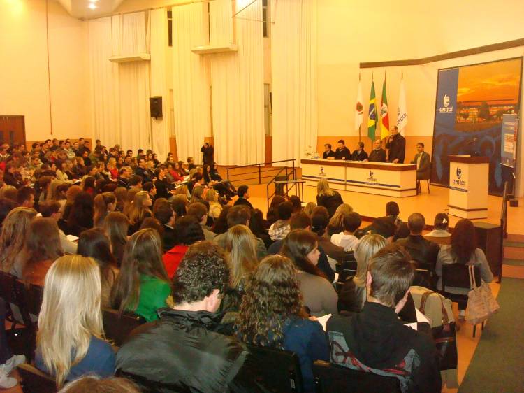 Os cursos de Administração e Direito da UNIJUÍ câmpus Santa Rosa realizaram na noite desta segunda-feira uma aula inaugural, com o objetivo de receber seus calouros e veteranos no segundo semestre letivo de 2013. As atividades, que ocorreram no auditório do Bloco C, contaram com parceria do Ministério Público.