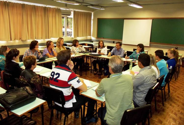 Na quinta-feira, dia 27, foi a vez do curso de pedagogia coordenado pela professora Hedi Maria Luft. O encontro foi realizado com representantes de professores e alunos. Durante a reunião foram discutidos assuntos sobre o inicio do ano letivo, atividades do curso que estarão sendo realizadas durante o mês de março, o seminário da pedagogia e pré-fórum Paulo Freire. Assim como, a programação e discussão da participação no XVII Encontro Nacional de Educação (ENACED) que será realizado no mês de maio.