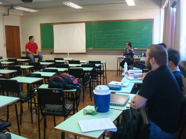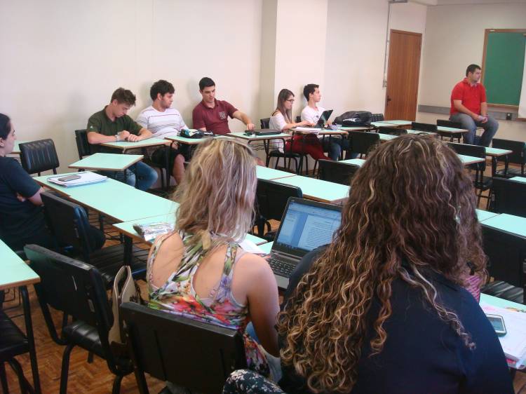 O biólogo realizou uma conversa com os acadêmicos sobre os projetos de sustentabilidade ambiental e as ações educativas desenvolvidas no Município de Santa Rosa, relatando questões decorrentes de mapeamento ambiental realizado pela turma no espaço urbano da cidade.