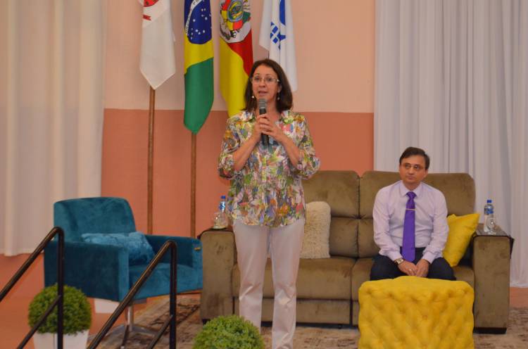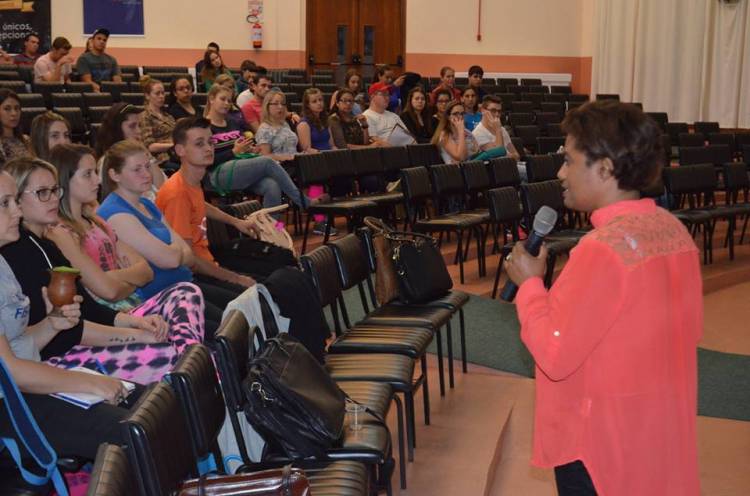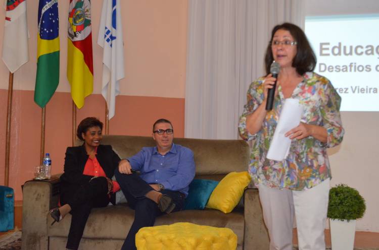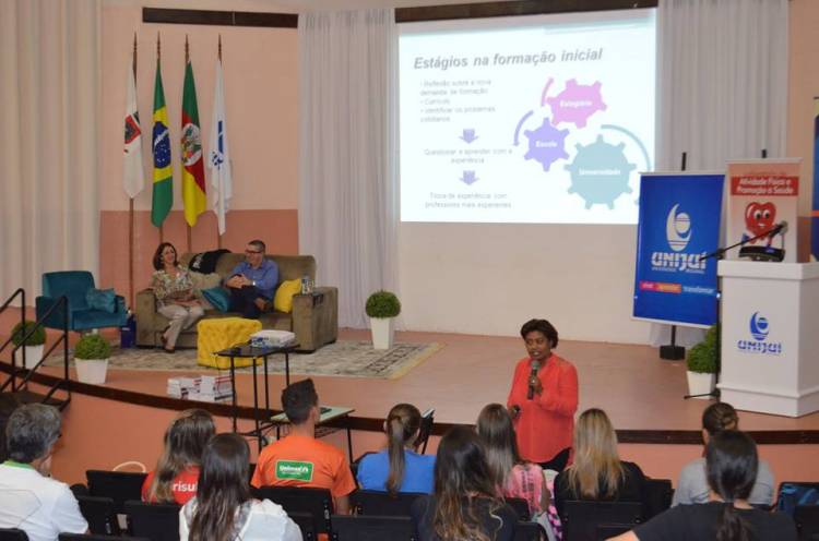 Na sequência teve a palestra com a professora Dra. Gelcemar Oliveira Farias (UDESC), que ministrou o tema “Educação, Saúde e Esporte: Desafios da Formação e Desenvolvimento Profissional em Educação Física”.