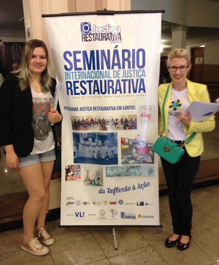 As acadêmicas do curso de Direito da UNIJUÍ e integrantes do Projeto de Extensão Cidadania para Todos, Ana Weiller e Bruna Bronzatto, participaram nos dias 20 e 21 de agosto em Santos/SP, do “1º Seminário Internacional de Justiça Restaurativa: 10 anos de diálogos para mudar realidades”.