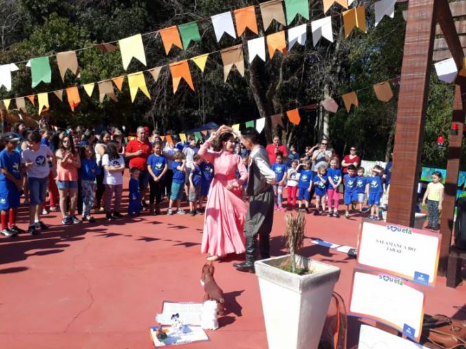 O dia de atividades e vivências lúdicas e pedagógicas iniciou logo cedo, com a saudação da equipe diretiva a todas as famílias e alunos presentes. O momento artístico de abertura, valorizou o folclore gaúcho com danças tradicionais, realizadas pelos alunos Lucas Falcão e Sara Brito, do oitavo ano.