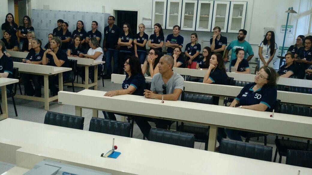 Na quarta feira, 14/02, a direção da EFA, através da diretora Maria do Carmo Pilissão, e da equipe diretiva, realizou o acolhimento e recepção dos professores no Centro de Eventos da Unijuí. Em seguida o grupo fez um tour para conhecer e reconhecer os diferentes ambientes da instituição, principalmente laboratórios para pesquisa e aulas práticas em 2018.