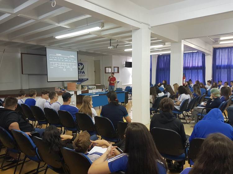 Na última sexta feira, 20, o Centro de Educação Básica Francisco de Assis –EFA, recebeu o meteorologista Thomas Kaufmann, que realizou uma palestra cujo o tema central foi Fenômenos da Atmosfera. O público principal eram os alunos do ensino fundamental e do ensino médio da instituição que tem este tema como um dos assuntos em seus planos de estudo, e junto deles, os docentes da EFA. O palestrante convidado é formado em meteorologia pela Universidade Federal de Pelotas e mestre em meteorologia pela Universidade Federal de Santa Maria. Neste encontro, os alunos puderam expor suas dúvidas por meio de um diálogo direto com o profissional da área, além disso, tiveram a oportunidade de conhecer outros ramos de atuação da meteorologia e os desafios do mercado de trabalho.