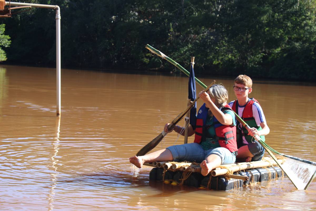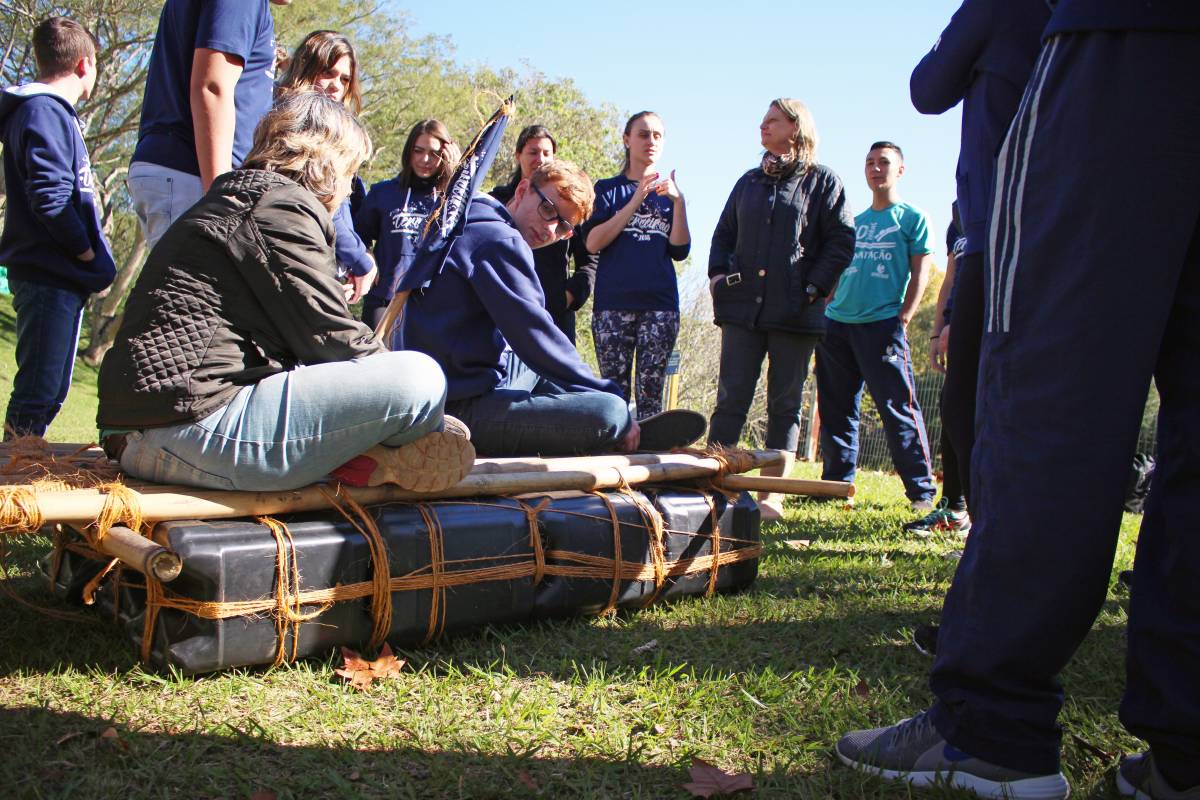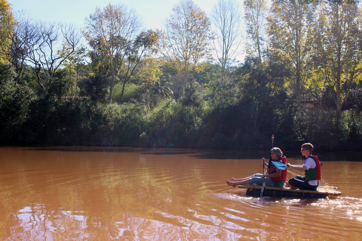 O aluno Leonardo Pohlmann Scherer foi quem se colocou à prova na hora de colocar a jangada na água. “No começo a gente acha que vai afundar, que não vai dar certo. Mas a partir do momento que você se acalma, que vê que vai boiar, é muito divertido”.