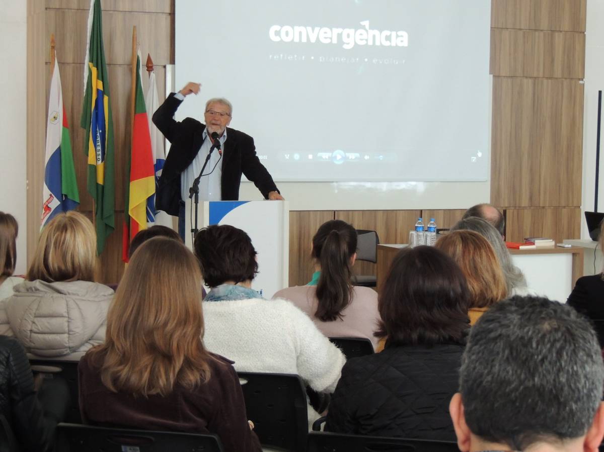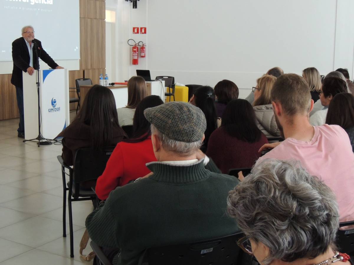 Nesta sexta-feira, dia 25, a Vice-Reitoria de Graduação da Unijuí promoveu formação continuada para docentes da Instituição. O tema do encontro trabalhado foi “Ciência, Tecnologia e Sociedade: novos paradigmas para a educação”, com o professor Walter Antônio Bazzo, da Universidade Federal de Santa Catarina.