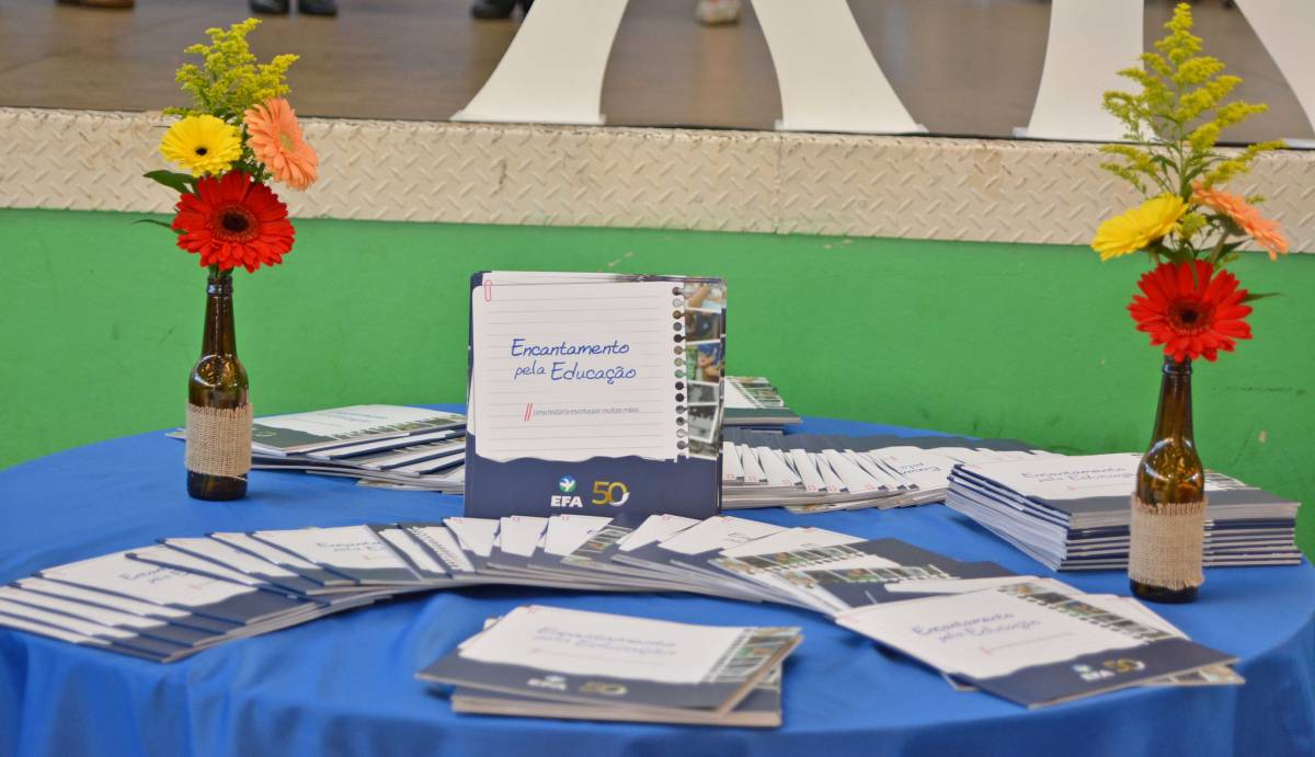 No último sábado, 14, A EFA realizou, no centro de evento da paróquia São Geraldo, mais uma edição do tradicional Chá EFAmília, momento especial de confraternização envolvendo toda comunidade escolar. Na oportunidade, ocorreu o lançamento da revista “Encantamento Pela Educação”, alusiva aos 50 anos da Escola. A revista, organizada pela professora Rosane Nunes Becker, traz um recorte de memórias do Centro de Educação Básica Francisco de Assis, através de fatos, fotos e de relatos que contam, narram e comentam a história da escola.
