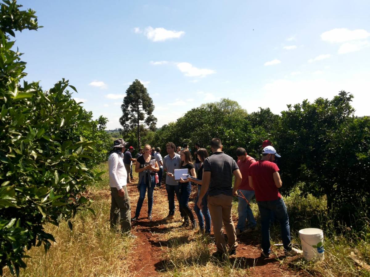 Estudantes da disciplina de Fruticultura do curso de Agronomia da Unijuí realizaram, nos dias 24/10 e 07/11 de 2018, visitas a propriedades rurais do interior dos município de Ijuí. Produções de uva, laranja, figo e nozes foram observadas oportunizando para que eles entendam a realidade das propriedades. Dessa forma, são desafiados a propor sugestões de melhoria viáveis para a produção aos agricultores. A disciplina é ministrada pelo professor Osório Antônio Lucchese, e teve o acompanhamento do engenheiro agrônomo Felipe Esteves Oliveski, do DEAg – Departamento de Estudos Agrários da Unijuí.