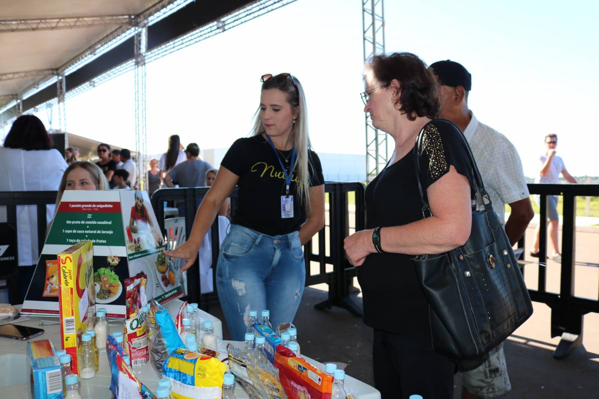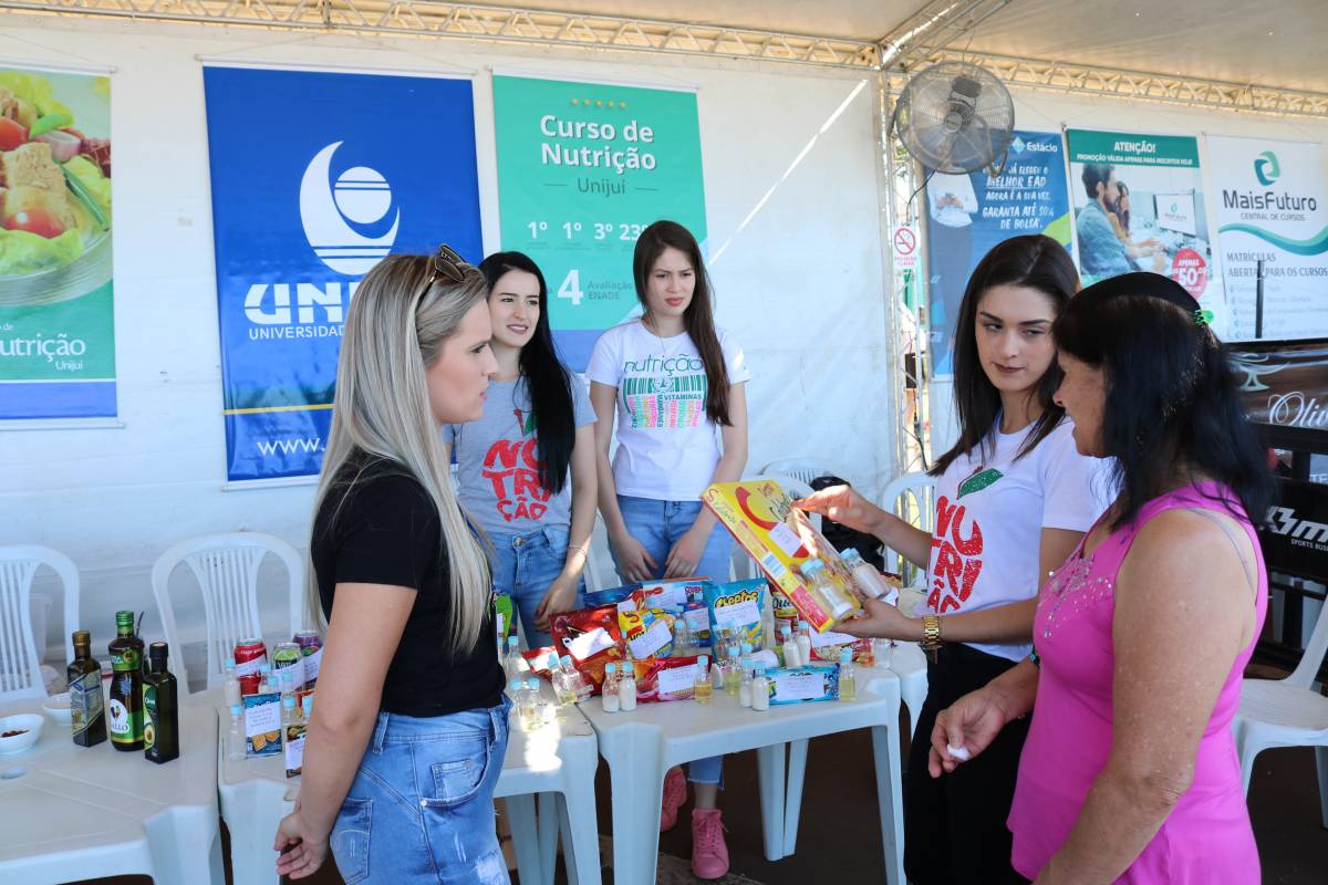 Já o curso de Nutrição trabalhou com o guia alimentar para a população brasileira, apresentando diferentes caixas de ultra processados, informando o teor de sal, açúcar e gordura desses produtos. Também apresentaram aos visitantes alguns óleos saudáveis para a saúde cardiovascular e um totem imagético que comparava as calorias de alimentos saudáveis com os industrializados.