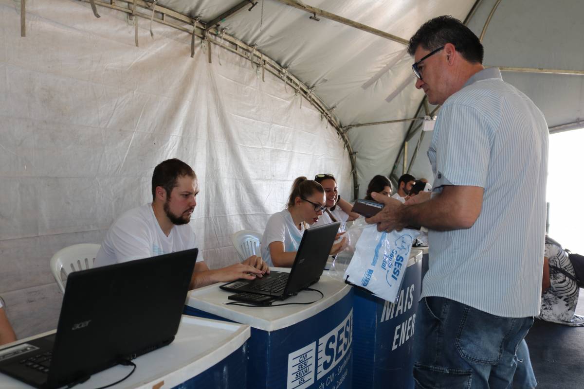 A Unijuí esteve participando no último sábado, dia 08, do evento “SESI Saúde Total”, no Tape Porã em Santa Rosa. Na oportunidade os cursos de Educação Física e Nutrição realizaram diversas atividades envolvendo a saúde e o bem-estar dos participantes.