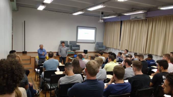 Os cursos de Engenharia da Unijuí realizaram na noite de segunda-feira (18), no Campus Santa Rosa, uma aula inaugural especial. Os calouros participaram de uma palestra ministrada pelos profissionais, Engenheiro Cláudio Otani, do Conselho Regional de Engenharia e Agronomia (CREA) e do Arquiteto Giofranco Saggin, da Associação Profissional dos Engenheiros e Arquitetos de Santa Rosa (APEA).