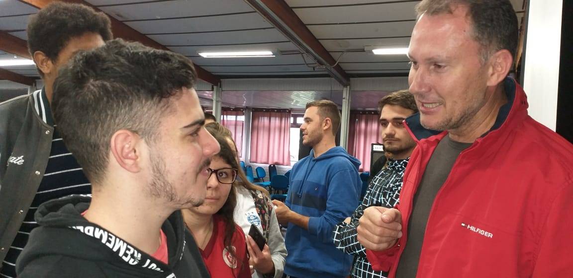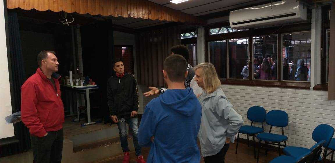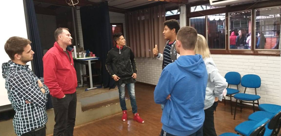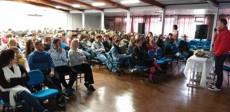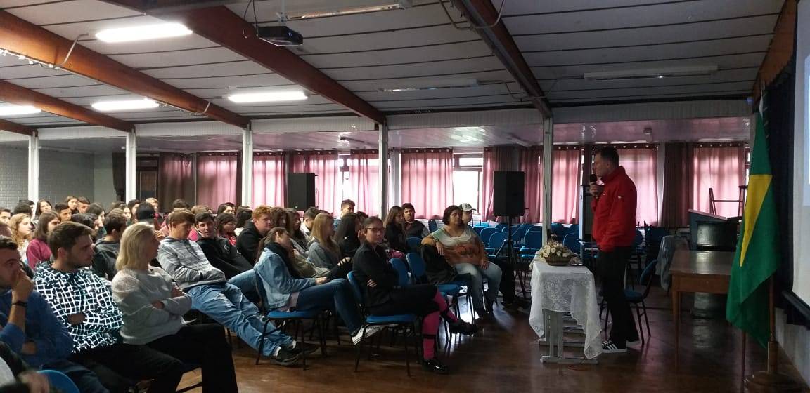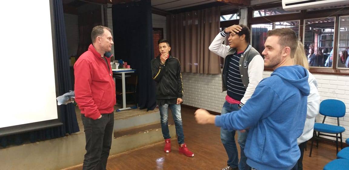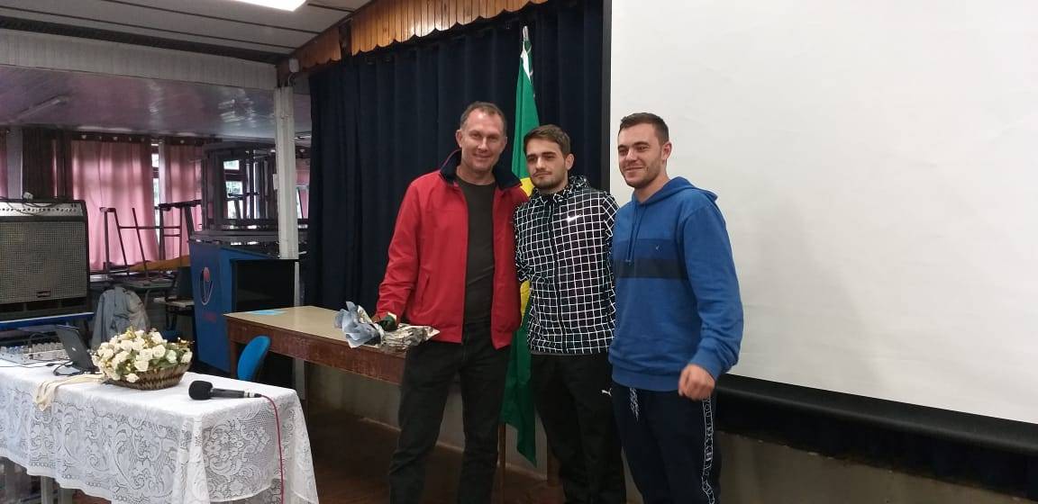 Os estudantes do curso de Educação Física da Unijuí Santa Rosa, Alexsander Patrick de Oliveira Dumke e Alisson Mateus Fabricio, que atuam como estagiários e residentes do Programa da Residência Pedagógica no Instituto Estadual de Educação Visconde de Cairu, organizaram uma palestra na manhã de quarta-feira, 29, para 220 alunos da escola.